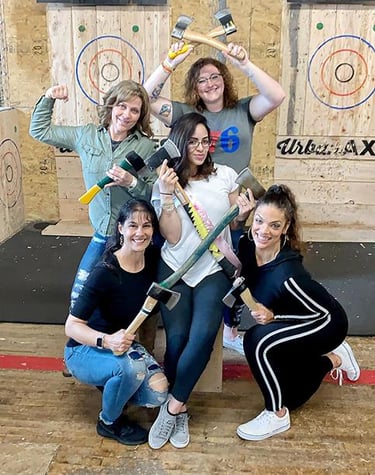 Designed for groups of 4-150+ people, our 1½ - 2 hour group axe throwing events are the most popular way to experience Urban Axes. Perfect for a fun night out with friends or your next office party!